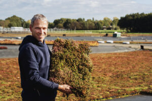 Zijn eigen kwekerij is een puur productiebedrijf, met de teelten van Fargesia Bamboe en het kweken van planten die geschikt zijn voor groene daken. De afzet is gericht op B to B waarbij groenvoorzieners, handel en webshops de doelgroep zijn. Sinds zeven jaar speelt hij met de groene daken in op een groeiende vraag uit de markt. ‘Met name in stedelijk gebied is dit erg gewild. Problemen met het rioolstelsel zorgen voor een grotere vraag. Dankzij groene daken worden stortbuien afgevangen en vertraagd; wat het rioolstelsel minder belast. Bovendien heeft het een verkoelende werking; geen overbodige luxe met de steeds warmere zomers. We leveren vooral Sedum vetplanten, opgerold in matten of in cassettes voor de klanten. Een dakdekker zonder groene vingers kan er makkelijk mee aan de slag en ook een hovenier die te maken heeft met een uitbouw, kan dit groendak adviseren en aanleggen.’