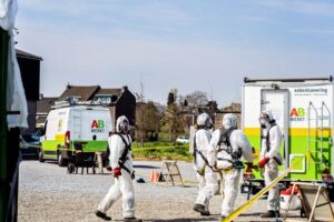 Sinds 2011 heeft AB Werkt Asbestsanering jaarlijks de omzet minimaal weten te verdubbelen. In de beginjaren werd het werk gedaan door 3 medewerkers, nu staat er een team van 16 specialisten. Samen bestrijken zij een gebied dat loopt van Zuid-Limburg tot Noord-Brabant. ‘Sinds 2017 zijn we elk jaar met één ploeg gegroeid’, vertelt Guido. ‘Vorig jaar zaten we op de top van ons kunnen en hebben we met 4 ploegen continu gedraaid. Die drukte werd o.a. veroorzaakt door de vele stormschades en natuurlijk de aanjaagsubsidie voor asbestsanering van de overheid.’