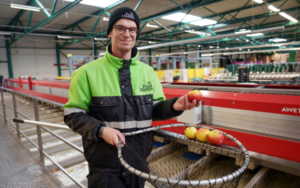 Terug in Nederland solliciteerde Pascal via AB Werkt bij Fruit Masters, kreeg een spoedcursus machinebeheer en binnen twee maanden was hij officieel machine operator. ‘Ik zorg ervoor dat we alleen de klasse 1 appels overhouden.’ Dat doet hij met een sorteermachine die elk stuk fruit met behulp van tientallen camera’s volledig scant. Zijn ze rot, gerimpeld of misvormd? Dan worden ze eruit gepikt. ‘Die machine afstellen is maatwerk. Daar ben ik onder andere verantwoordelijk voor.’