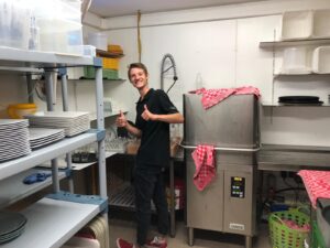 Jakub bleek een lot uit de loterij. ‘Hij is heel voorkomend, netjes en goed verzorgd’, vertelt Alex. ‘En het klikte ontzettend goed, ook met de andere medewerkers.’ Jakub spreekt ook nog eens een prima woordje Engels. ‘We hebben hem alvast teruggevraagd voor volgend jaar. Wat mij betreft gaat hij dan in de bediening aan de slag.’ De laatste maanden van het seizoen nam Alex via AB Werkt nog twee Poolse medewerkers aan. ‘Zij werkten eerder in de fruitpluk. De huisvesting was al geregeld, omdat ze bij de boer konden blijven wonen. Ik kon hun hulp goed gebruiken.’ De taalbarrière lossen ze op met Google Translate.