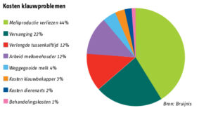 Via de online VeeManager van CRV of een beveiligd deel op www.gezondeklauwen.nl weet je na elk bezoek van de klauwverzorger meteen wat de nieuwe status is van de klauwgezondheid binnen je bedrijf. In het dieroverzicht zie je de geschiedenis van elk afzonderlijk dier en in het bedrijfsoverzicht het verloop van de klauwgezondheid. Je kunt zelfs een vergelijking maken met landelijke cijfers via de klauwgezondheidsscore (KGS). Die loopt van 0 tot 100, met 50 als landelijk gemiddelde. Dit maakt de KGS tot een soort rapportcijfer.